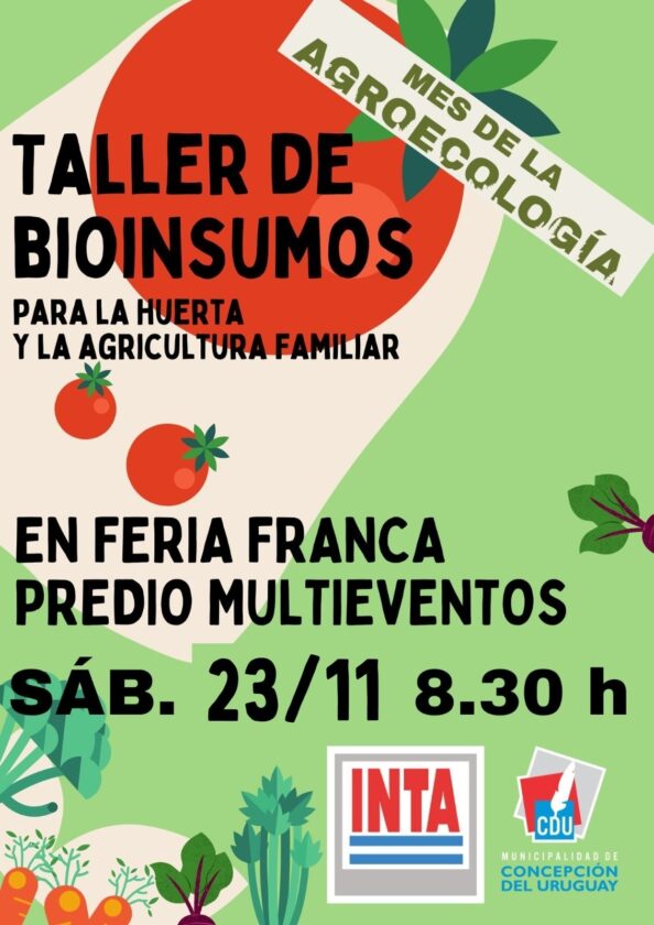 La Feria Franca de la Municipalidad de Concepción del Uruguay, junto con la Agencia de Extensión Rural del INTA, organiza el Taller de Bioinsumos para la Huerta y la Agricultura Familiar, que se realizará el próximo sábado 23 de noviembre, a las 8:30 horas, en el Predio Multieventos Municipal (entrada por calles Reibel y Belgrano).